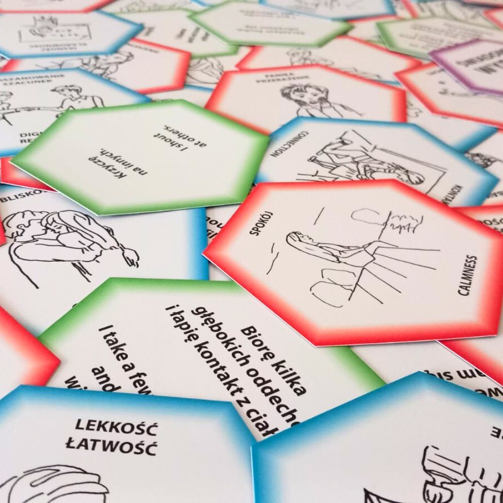 Szybko okazało się, że karty są świetnym narzędziem do pracy zarówno z dziećmi, jak i z dorosłymi. Służyły wielokrotnie jako skuteczna pomoc w trakcie grupowych warsztatów, jak i w indywidulanych sesjach. Można z nich korzystać według uznania i pomysłów użytkowników, podsuwamy także kilka naszych ćwiczeń i scenariuszy.