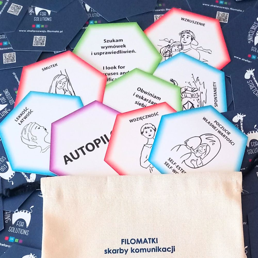 FILOMATKI to praktyczne narzędzie, które buduje i ułatwia empatyczną komunikację ze sobą i z innymi. Karty będą pomocne dla: